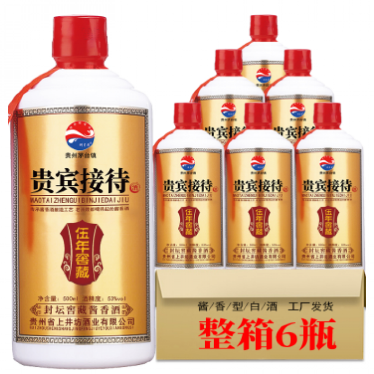 - 贵州茅台镇酱香型白酒整箱6瓶贵宾接待酒53度高粱酒